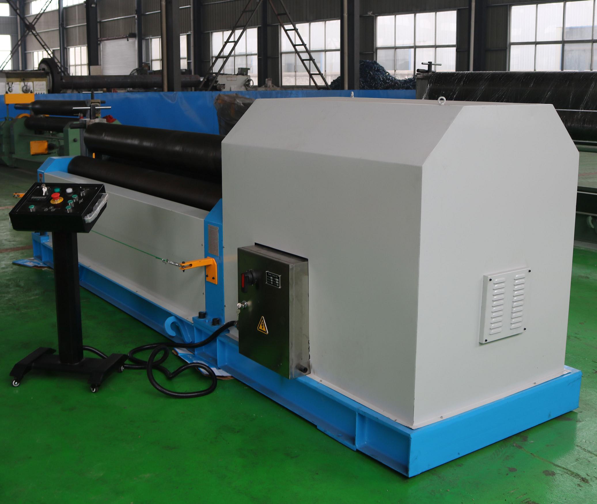 W11對(duì)稱彎板機(jī)是全機(jī)械式三彎板機(jī)。 三個(gè)滾筒全部固定,像金字塔一樣放置。
